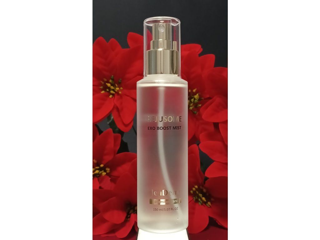 REJUSOME Exo Boost Mist je prémiová booster mlha s vysokou koncentrací čistých exozomů (10 000 ppm) poskytující neuvěřitelnou hydrataci pleti, eliminující suchost a dodávající zářivý lesk. Obsahuje 250 ppm peptidů a 10 000 ppm extraktu Edelweiss.